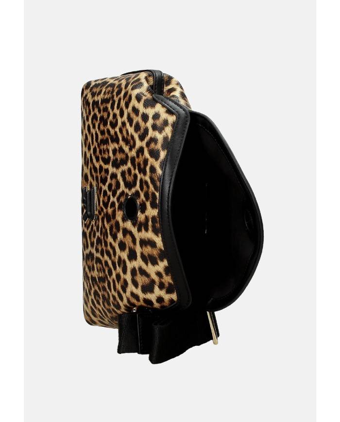 Borsa a mano e a tracolla realizzata in ecopelle con stampa leopardo.
