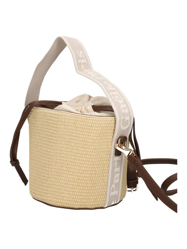 Borsa secchiello in tessuto. L'articolo presenta tracolla removibile.