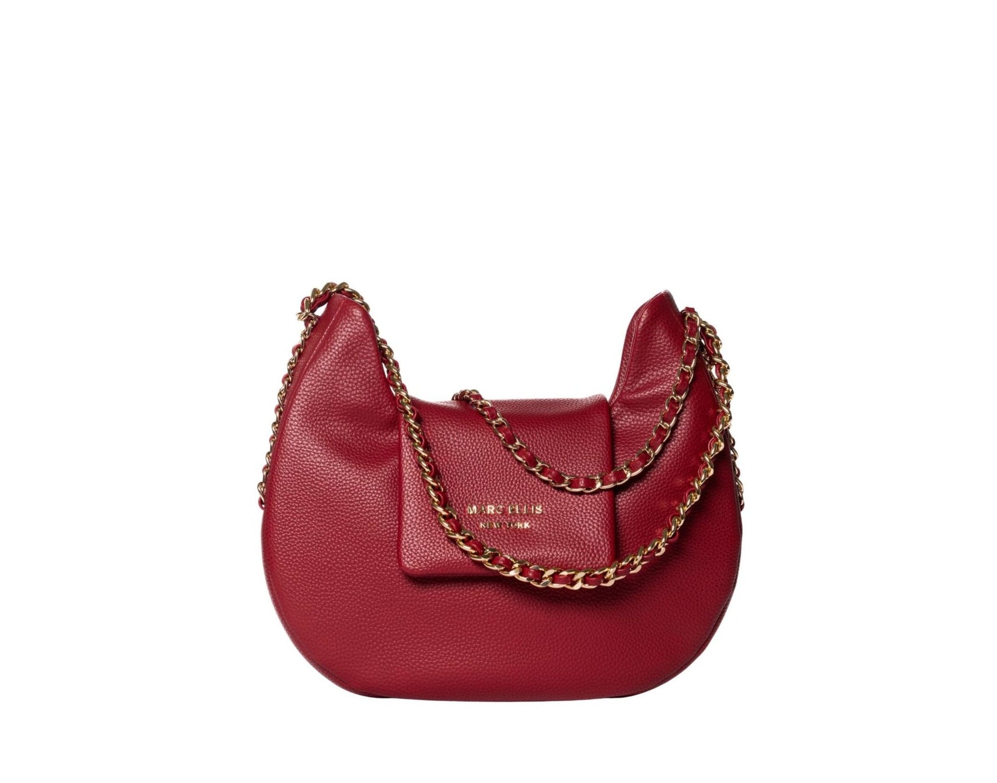Borsa a tracolla firmata Marc Ellis in similpelle. Chiusura con clip e logo metallico sulla patta, uno scomparto interno , manico in catena e in dotazione tracolla removibile .