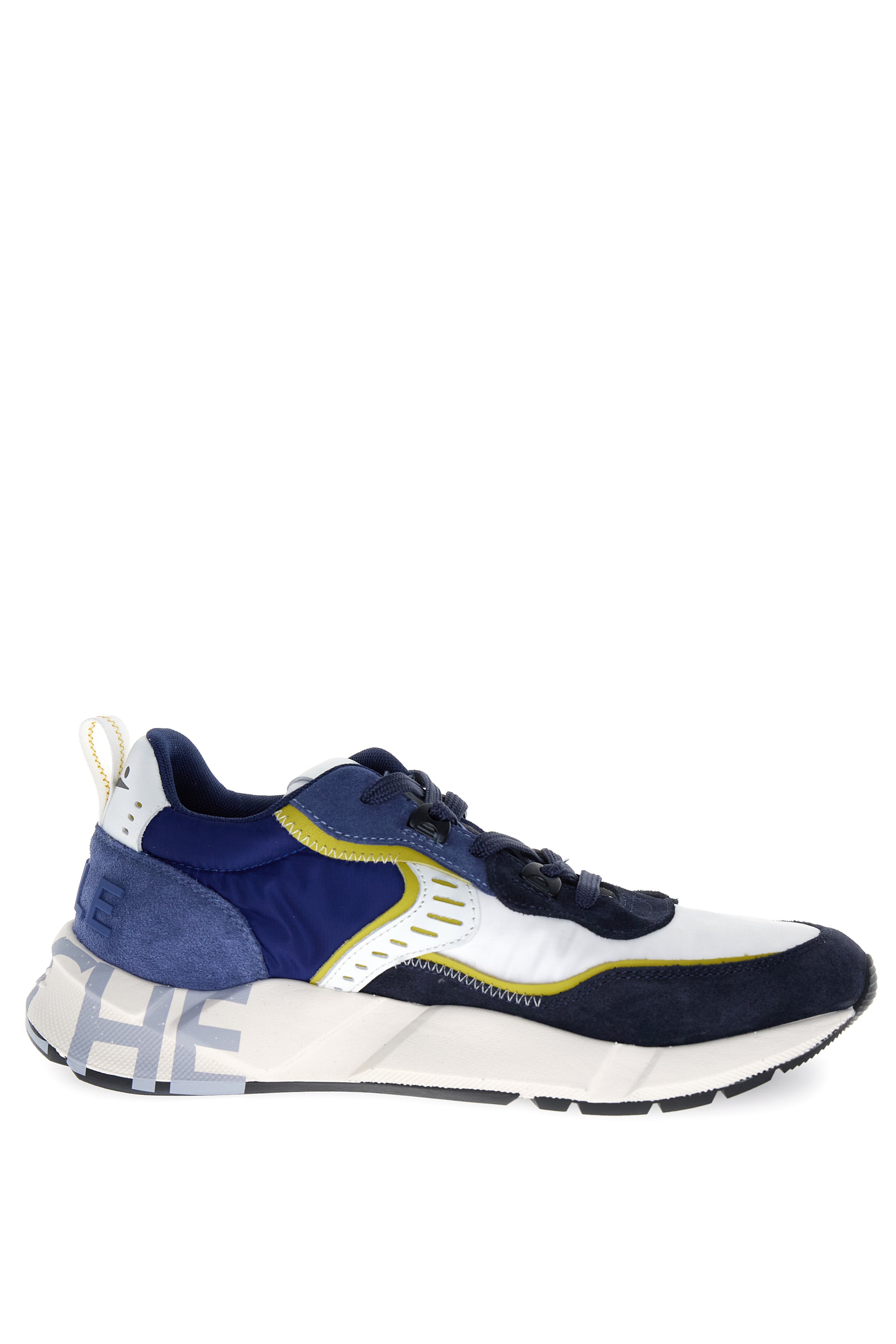 Silhouette decisa e influenze active sono il cuore di questa nuova Club 01: la tomaia in tessuto tecnico e suede lavato è ritmata da intarsi in pelle e impunture a contrasto. I lacci in cotone sono abbinati a occhielli rinforzati tridimensionali. Fodera interna in tessuto e soletta in pelle. Il fondo in gomma ultra leggera è decorato dal logo serigrafato lungo il bordo.