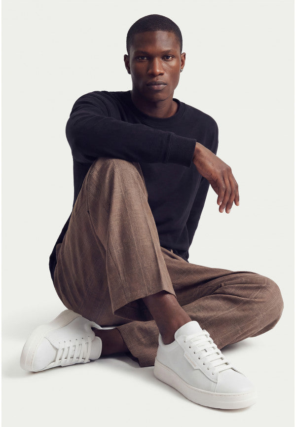 Sneaker in vitello bottalato. Soletta interna estraibile, fondo a cassetta in gomma ultra leggera.