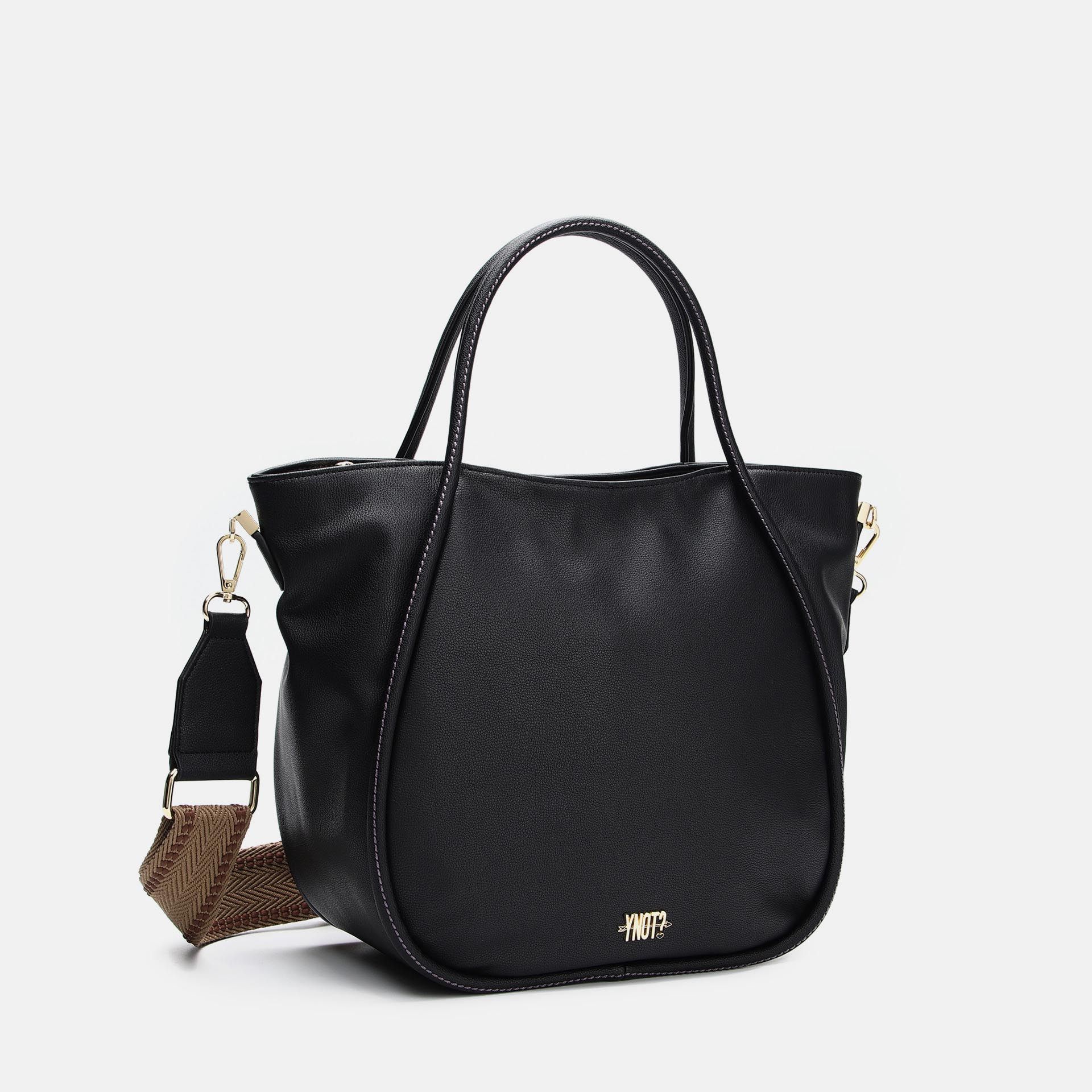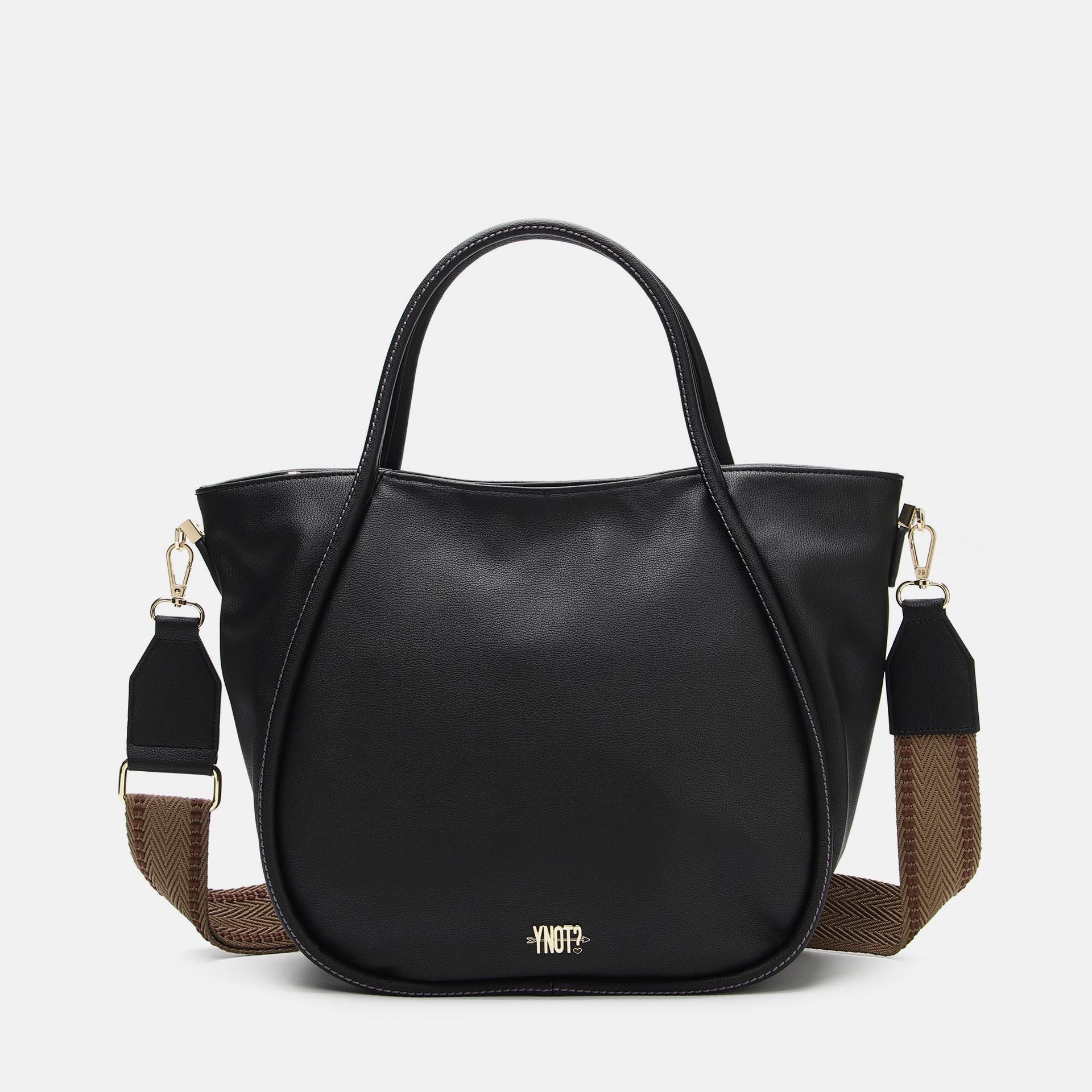 La borsa a mano Ynot? in similpelle unisce stile e praticità in un design moderno e raffinato. Dotata di doppi manici superiori e di una tracolla in tessuto con motivo chevron regolabile e rimovibile, offre versatilità e comfort in ogni occasione. La chiusura con zip assicura funzionalità, mentre i dettagli metallici dorati e il logo Ynot? frontale completano un look sofisticato, perfetto sia per l’uso quotidiano che per occasioni eleganti.