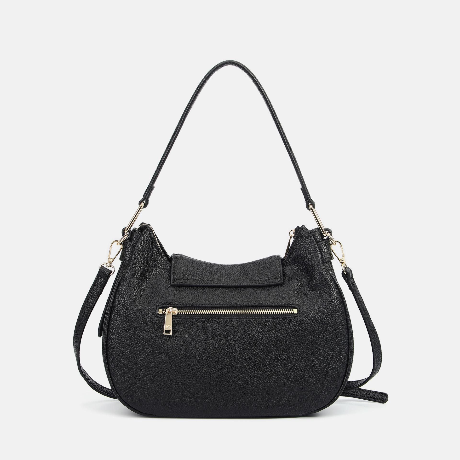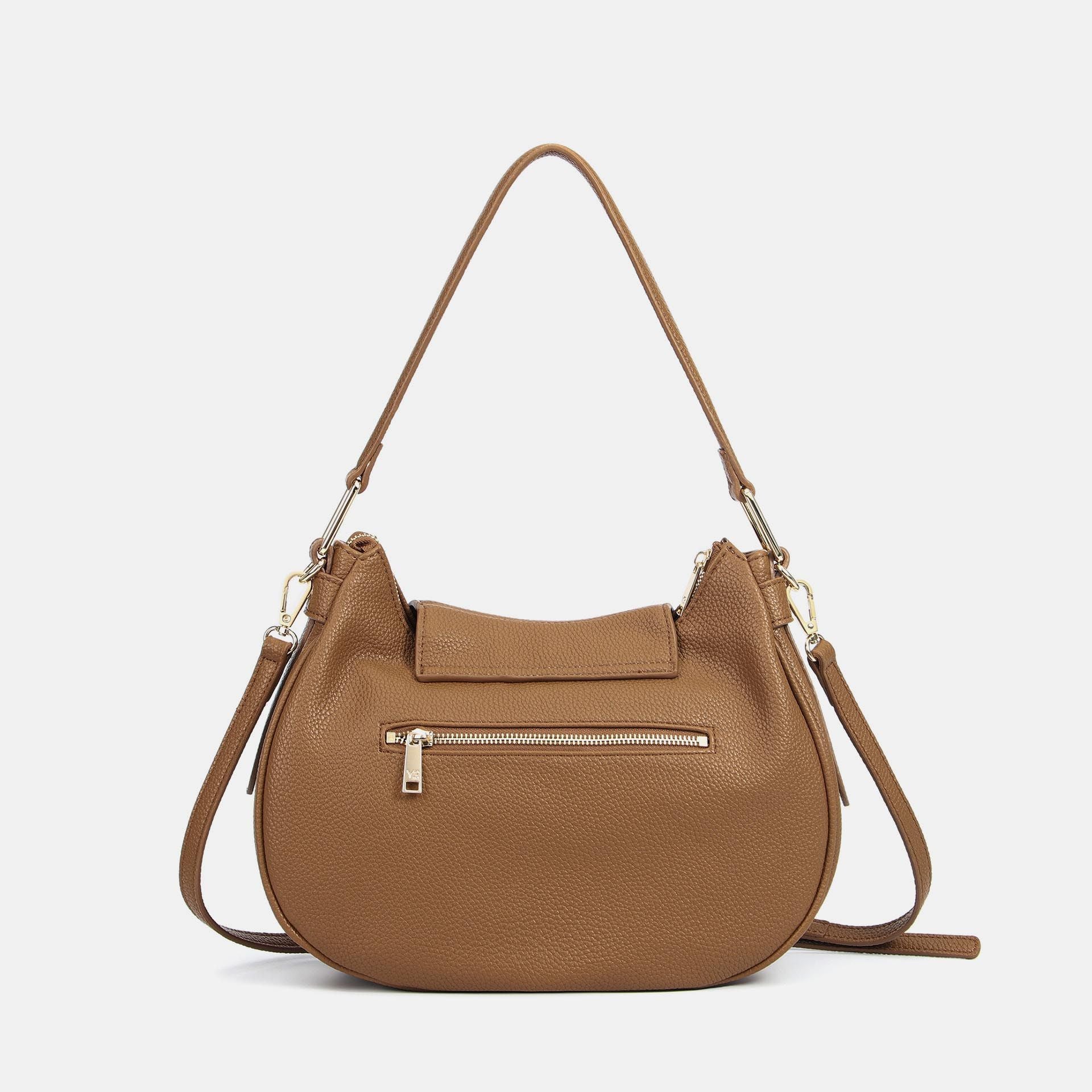 La Hobo bag unisce stile e funzionalità con la sua chiusura principale a patta e una chiusura secondaria con zip per maggiore sicurezza. L'interno è foderato e organizzato per una perfetta gestione dello spazio. Versatile e comoda, può essere portata sia a mano che a spalla, adattandosi alle tue esigenze quotidiane con eleganza.